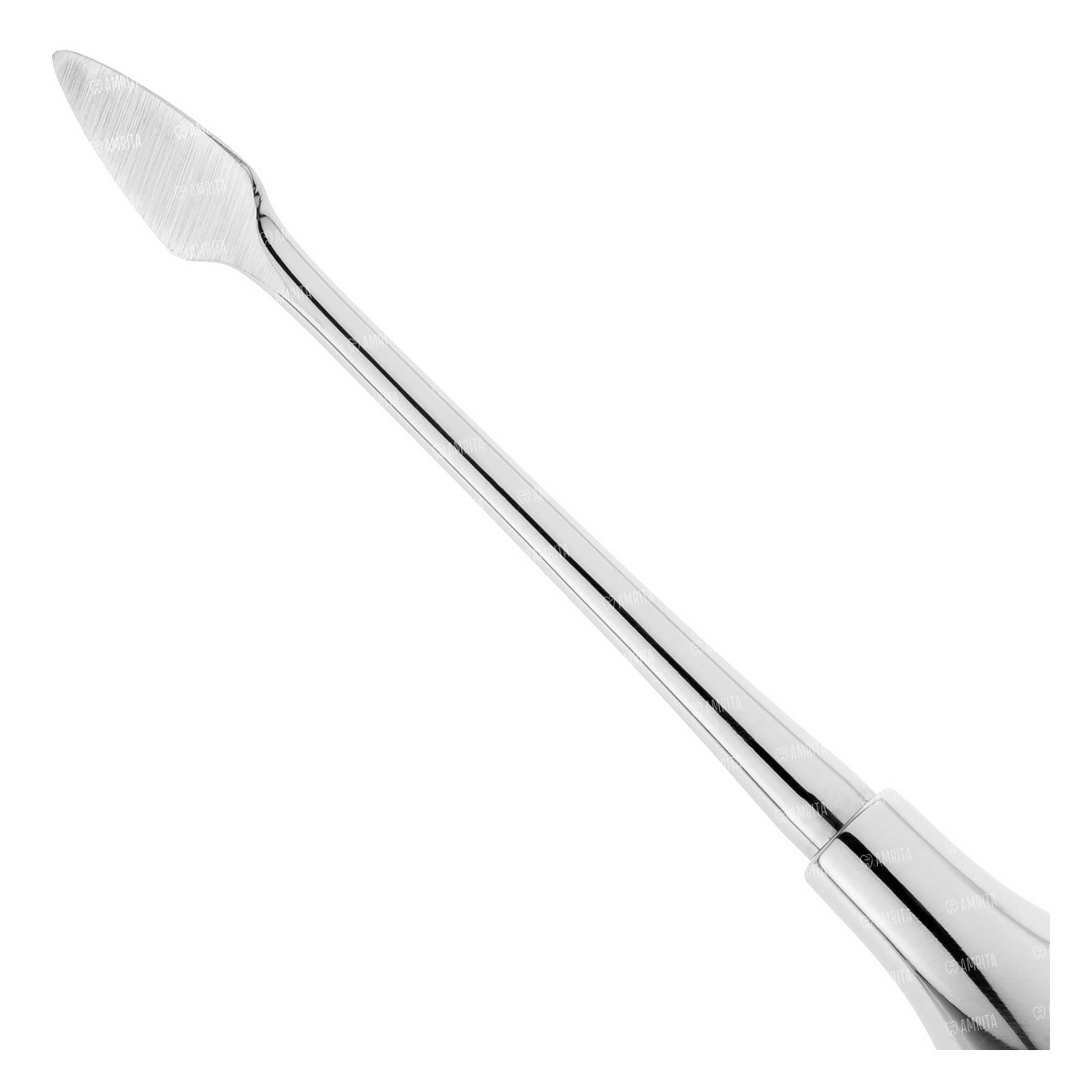Прямой двусторонний распатор для работы с мягкими тканями. Имеет полую круглую ручку диаметром не более 10 мм. С обоих концов расположены два функциональных стержня не симметрично заканчивающихся разными формами рабочих частей. Один из функциональных стержней прямой и заканчивается пластиной ромбовидной формы, другой функциональный стержень имеющий два изгиба как у пародонтальной кюреты заканчивается пластинкой в форме диска.
