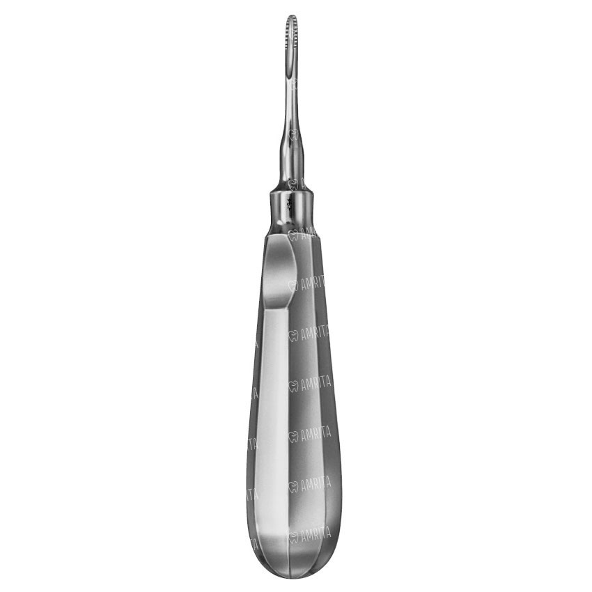 Элеватор по Lindo-Levian, ширина 3,5 мм, DL056R, B.Braun (Aesculap, Германия) имеет зазубренную прямую рабочую часть и облегченную многогранную ручку, благодаря которой позволяет снизить нагрузку на руки при продолжительном использовании. Инструмент применяется при удалении верхних корней зубов. Качественная заточка дает высокий уровень безопасности и точность при выполнении операций.