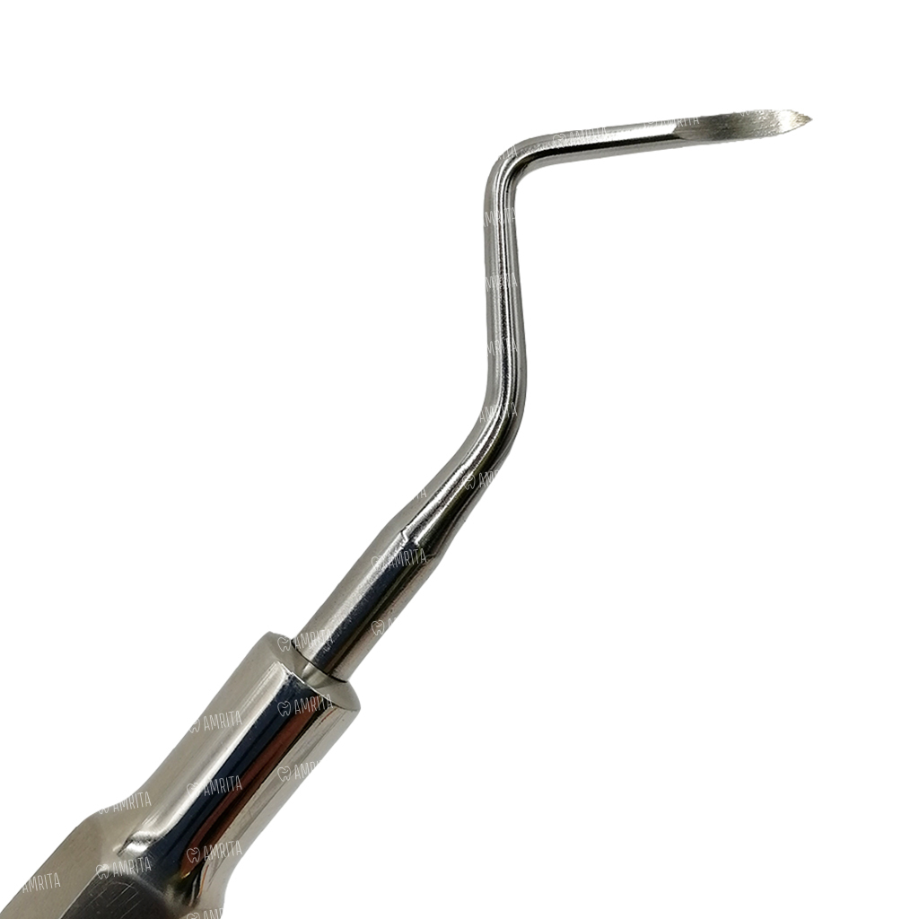 Инструмент сделан из нержавеющей стали, что позволяет дезинфицировать элеватор разными способами, в автоклаве в том числе.