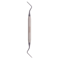 Инструмент подходит для люксации верхушек корней с последующим удалением. Тонкий длинный стержень, изогнутый в двух плоскостях относительно ручки проникает в самые труднодоступные области ротовой полости. Длина рабочей части позволяет добраться до верхушки корня и подцепить ее, вытолкнув из лунки.