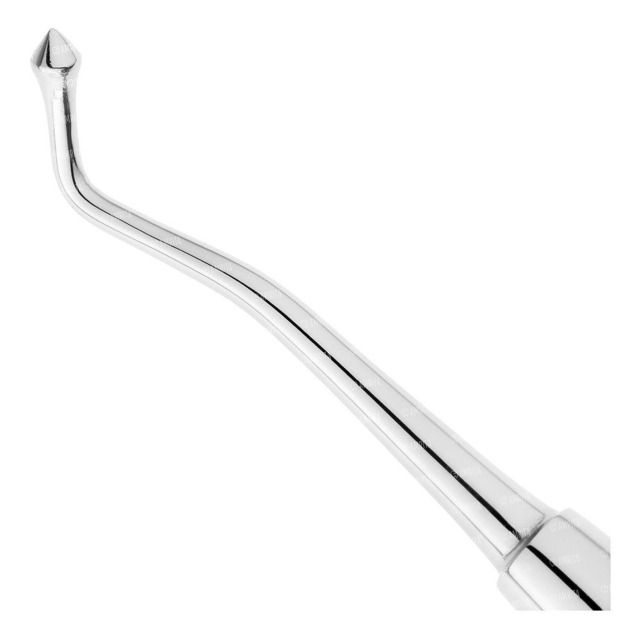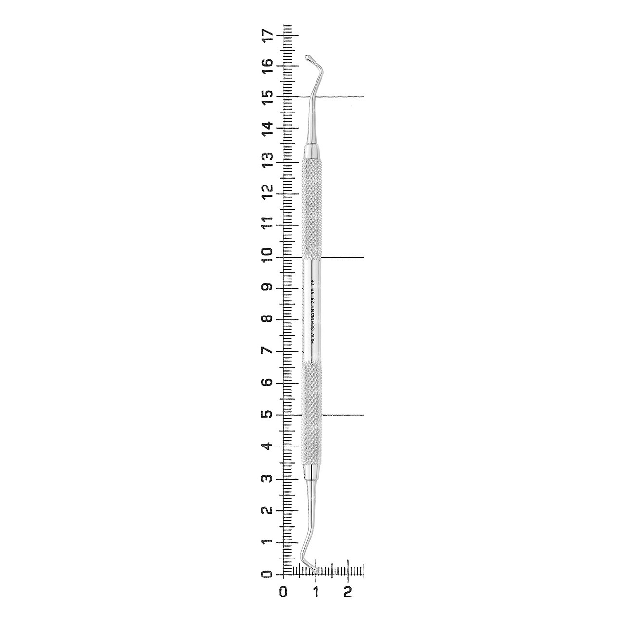 Ручка круглая диаметром не более 6 мм и покрыта ретенционным узором предотвращающим скольжение инструмента в фалангах пальцев врача при работе.