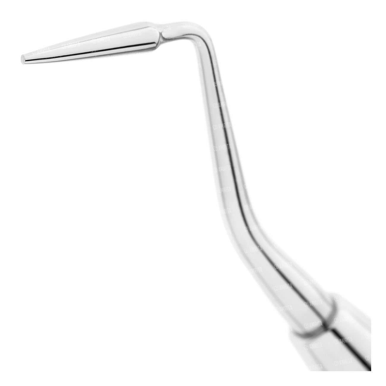 Ручка круглая диаметром не более 6 мм и покрыта ретенционным узором предотвращающим скольжение инструмента в фалангах пальцев врача при работе.