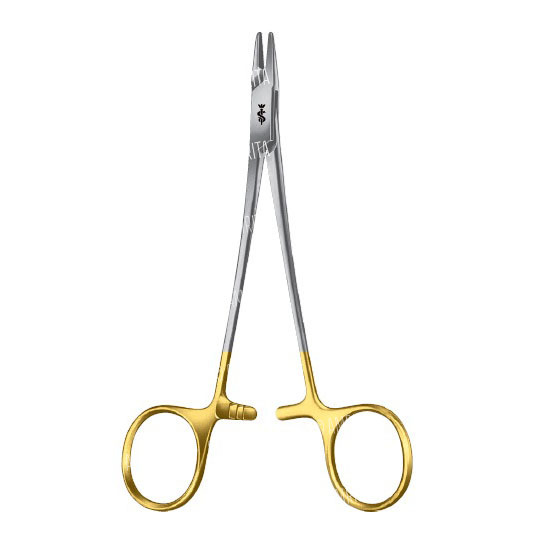Иглодержатель по CRILE-WOOD, DUROGRIP, длина 145мм, для нитей 4/0-6/0, BM016R, B.Braun (Aesculap, Германия) используют для наложения швов, как поверхностных на коже, так и при оперативных вмешательствах. Инструмент выполнен с твердосплавными вставками на основе кобальта, имеет эргономичную форму, с учетом анатомических особенностей, для удобного расположения в руке и точной работы врача. Кольца рукоятки позолоченные, между ними расположен замок - кремальера, который фиксирует положение рукояток иглодержателя.