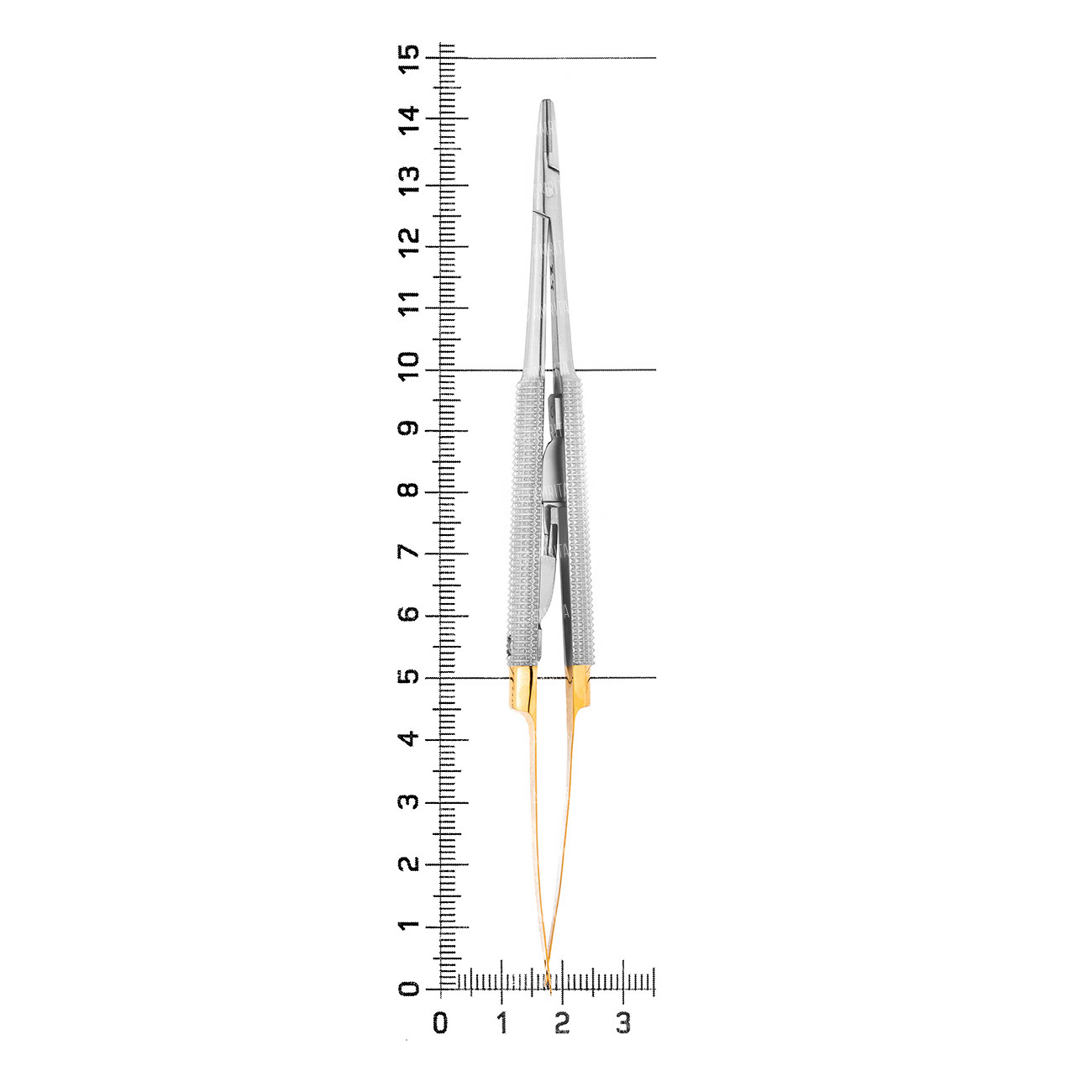 Иглодержатель микрохирургический CastroviejoGomel TC прямой, 14 см, карбит вольфрамовые вставки (5-0, 6-0, 70), HLW (Германия) предназначен для работы с тонким шовным материалом и небольшими иглами.