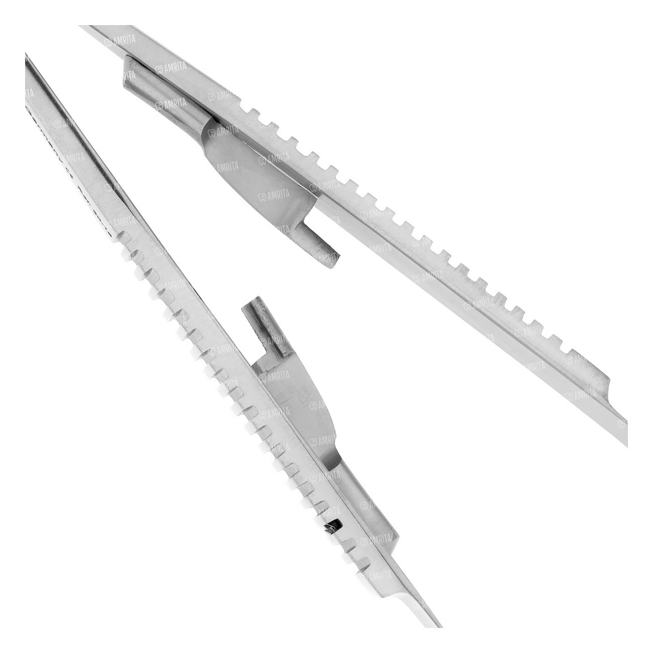 Ручки инструмента переходят в вынесенную наружу плоскую разводную пружину, которая обеспечивает необходимый баланс инструмента. Рабочие части узкие, покрыты крупнозернистым ретенционным узором. Общая длина инструмента не более 14 см.