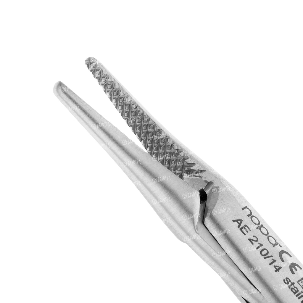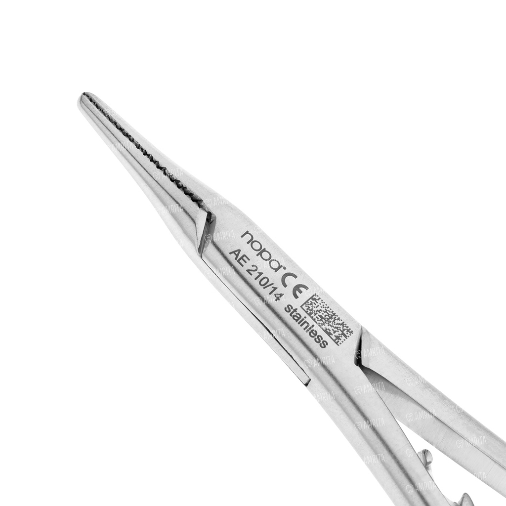 Иглодержатель Mathieu (Матье) торговой марки Nopa Instruments Medizintechnik GmbH используется для проведения хирургической иглы через ткани при наложении швов. Прямые рабочие части имеют крестообразные насечки, препятствующие скольжению иглодержателя по поверхности хирургической иглы при наложении шва. Рабочие концы инструмента небольшие, суженные и закругленные на конце. Такая конструкция щечек иглодержателя упрощает захват и освобождение иглы, а также обеспечивает точность проведения иглы на всех стадиях наложения швов.
