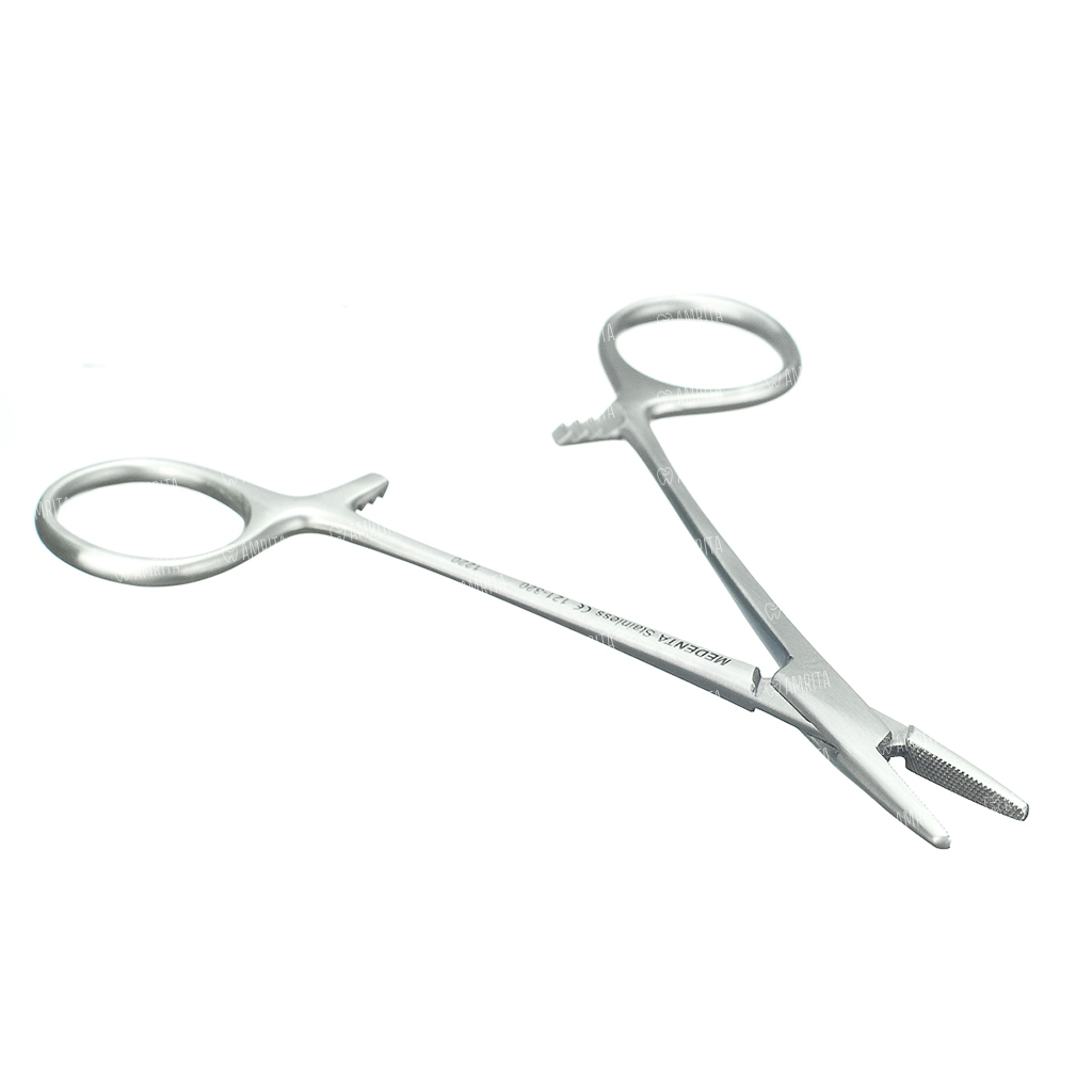 Длина инструмента — 13 см. Иглодержатель прямой.