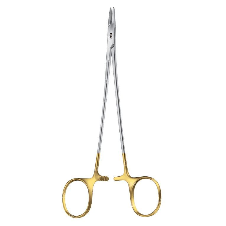 Иглодержатель по DE BAKEY, DUROGRIP, длина 165 мм, BM063R, B.Braun (Aesculap, Германия) используют для наложения швов, как поверхностных на коже, так и при оперативных вмешательствах. Инструмент выполнен с твердосплавными вставками на основе кобальта, имеет эргономичную форму, с учетом анатомических особенностей, для удобного расположения в руке и точной работы врача. Кольца рукоятки позолоченные, между ними расположен замок - кремальера, который фиксирует положение рукояток иглодержателя. На браншах нанесены специальные насечки, которые позволяют прочно удерживать иглы в процессе наложения швов.