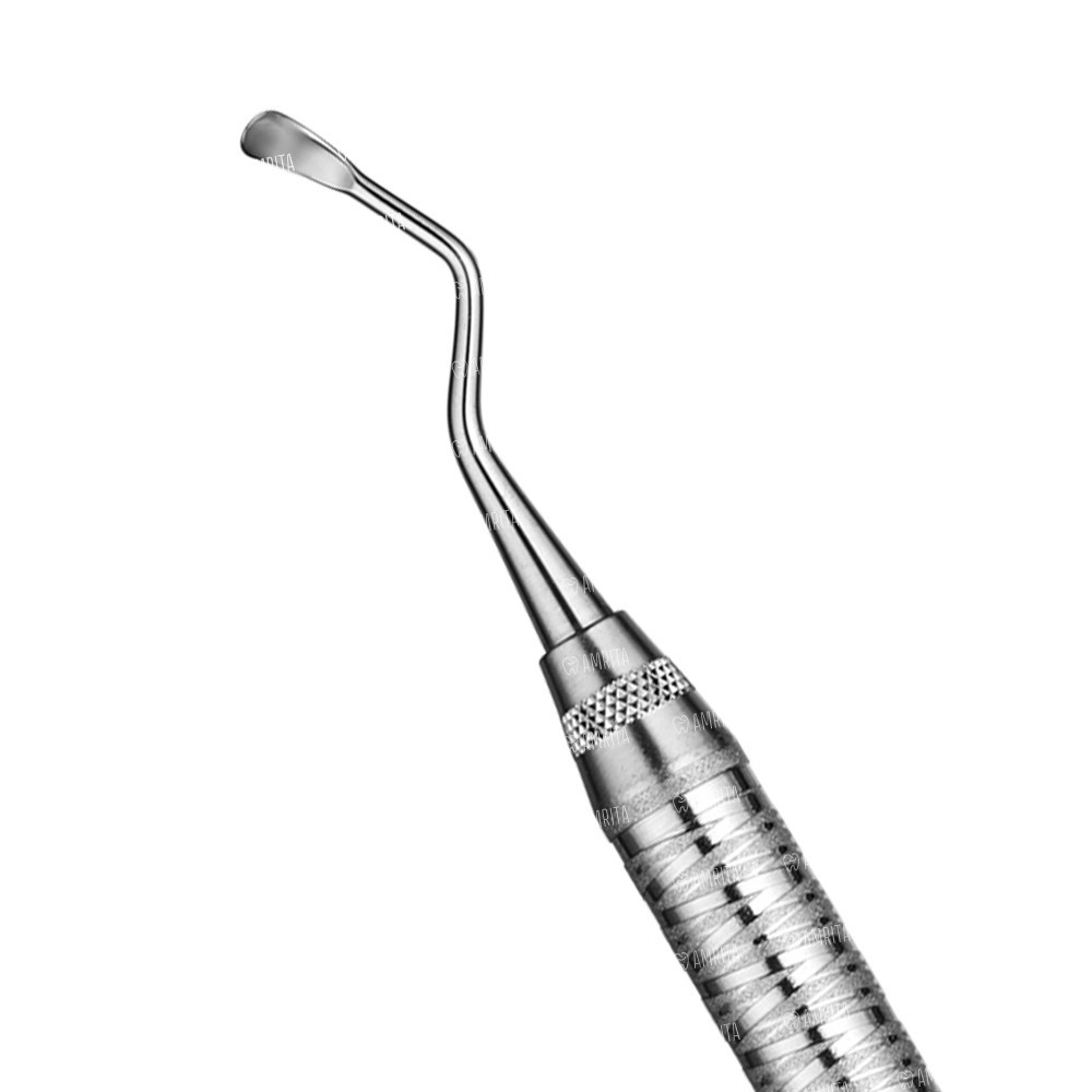Форма, размер и расположение рабочих концов относительно ручки позволяют аккуратно и эффективно приподнимать, отодвигать или отражать мембрану от кости.