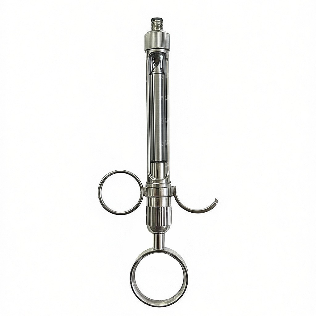 - Материал: шприц полностью изготовлен из высококачественной медицинской нержавеющей стали, устойчивой к коррозии и химическому воздействию;