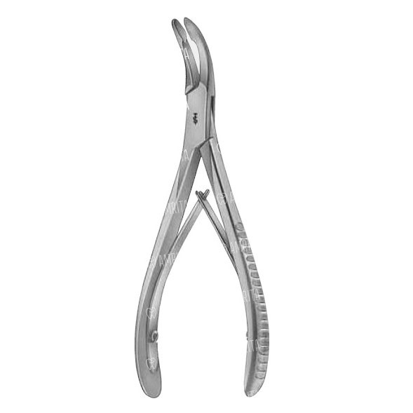 - Рабочая часть кусачек имеет сильный изгиб по плоскости, это дает возможность ввести инструмент глубоко в полость рта и без затруднений провести операцию по изменению поверхности костного гребня