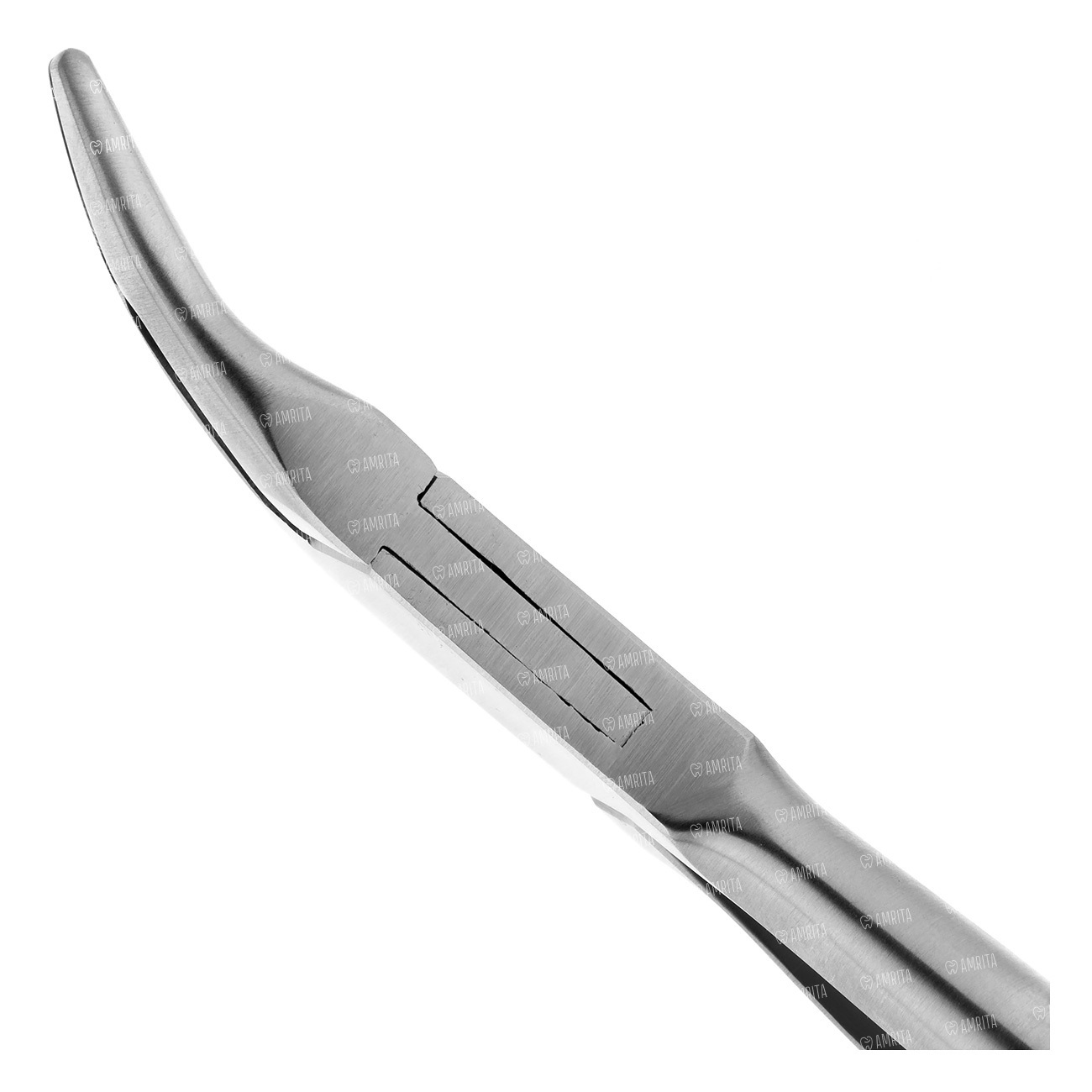 Кусачки костные Blumenthal, HLW (Германия) применяются для устранения костных выступов, краев лунки и межкорневых перегородок зубов, неровных костных отломков челюсти. Рабочие поверхности инструмента ориентированы по отношению к ручкам под углом 450, что позволяет использовать костные кусачки на труднодоступных участках полости рта. Заостренные края и желобовидные углубления на внутренних поверхностях щечек обеспечивают точечное скусывание костных участков без излишнего давления на соседние ткани.