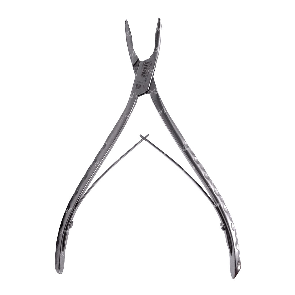 - С внутренней стороны к каждой ручке прикреплена пластиночная разводная пружина, обеспечивающая плавный ход инструмента, а также автоматически возвращает рабочие поверхности костных кусачек в разомкнутое состояние после прекращения надавливания на рукоятки
