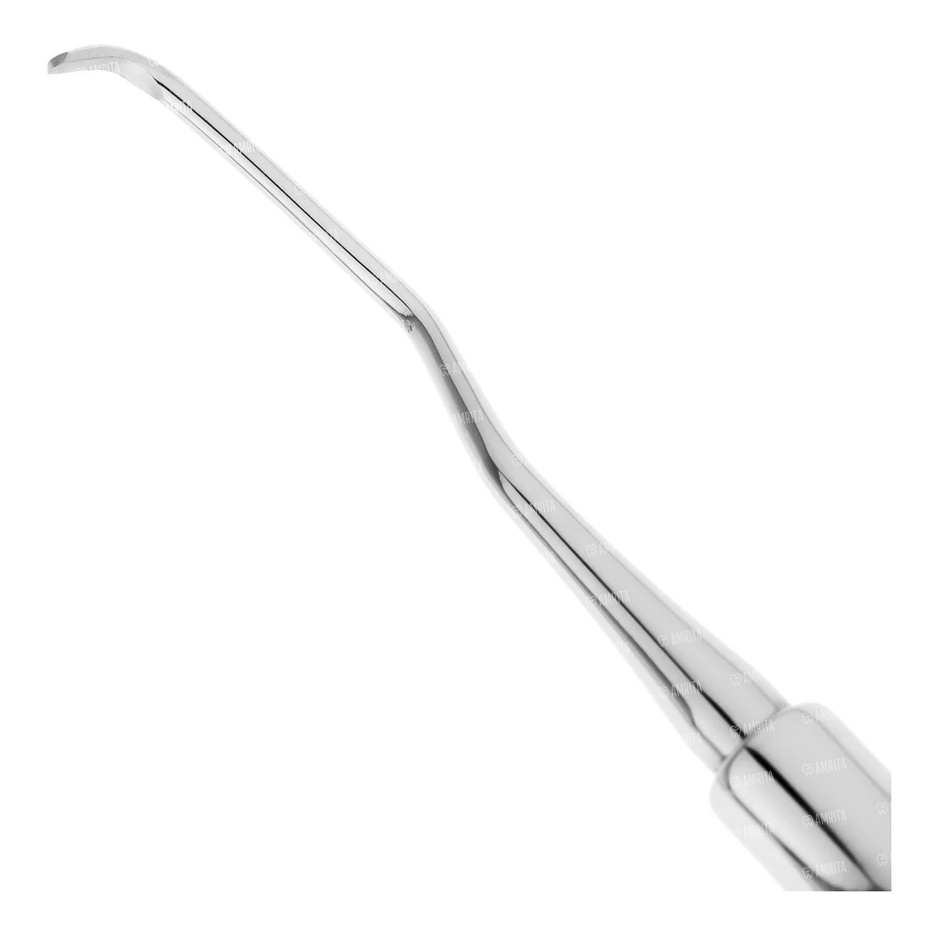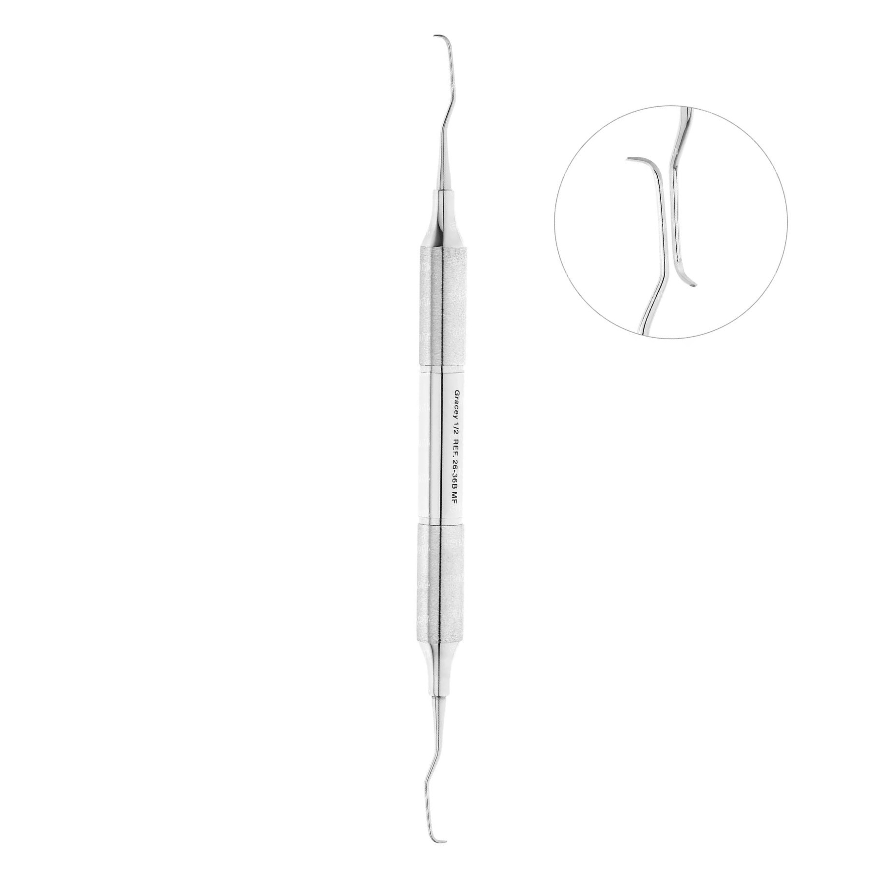 Рабочая часть двустороннего инструмента имеет укороченный рабочий кончик, полукруглое сечение и режущую кромку, расположенную под углом 70° по отношению к терминальному стержню. Такая конструкция кюреты идеально подходит для работы в глубоких пародонтальных карманах.
