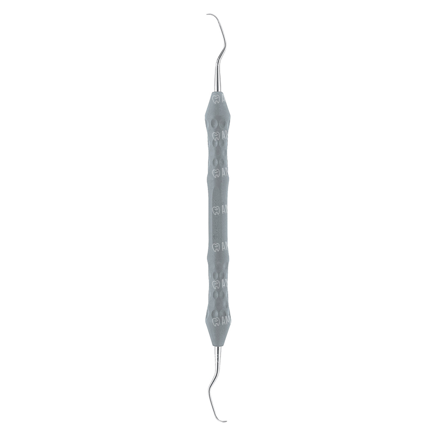 Кюретка, титановая, длина 5/6, DB182T, B.Braun (Aesculap, Германия) предназначена для чистки зубных имплантатов. Инструмент выполнен в форме эргономичной ручки серого цвета с неровной поверхностью, которая препятствует выскальзыванию из руки во время проведения манипуляций. Рабочая часть двухсторонняя, имеет закругленный кончик, режущие (боковые) края, округлую спинку.