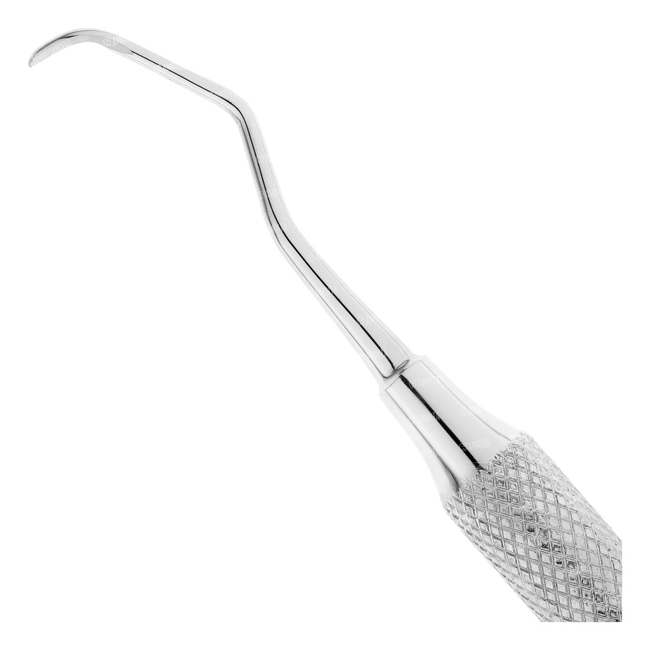 Благодаря ретенционным насечкам на внешней поверхности ручки стоматологический инструмент надежно держится в руке и способствует успешному проведению манипуляций.