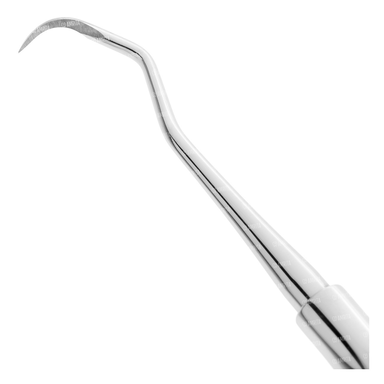 Двухсторонний парадонтологический скейлер с тройным изгибом по ребру рабочих частей МАККОЛЛА форма 13S и 14S. Диаметр ручки не более 8 мм.