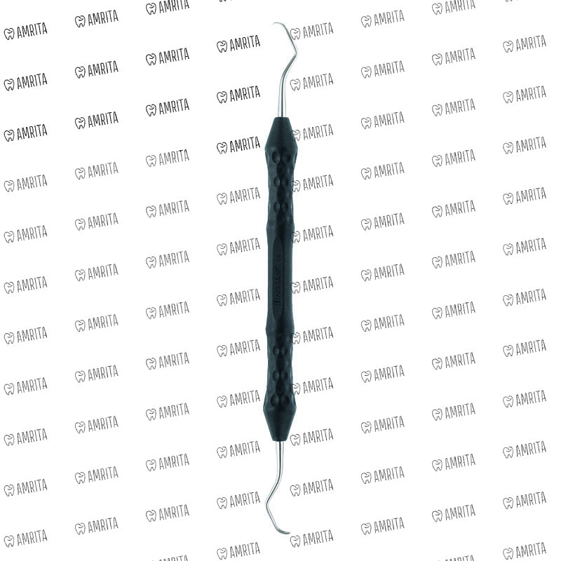 Кюретка стоматологическая, по COLUMBIA, 4R/4L, DB363R, B.Braun (Aesculap, Германия) предназначена для удаления поддесневого и незначительного наддесневого зубного камня, грануляционных и эпителиальных тканей зубодесневого кармана, размягченных инфицированных элементов зубного цемента. Инструмент состоит из ручки черного цвета, функционального стержня и рабочей части, изготовленной из нержавеющей части. Рабочая часть имеет закругленный кончик, режущие (боковые) края, округлую спинку.