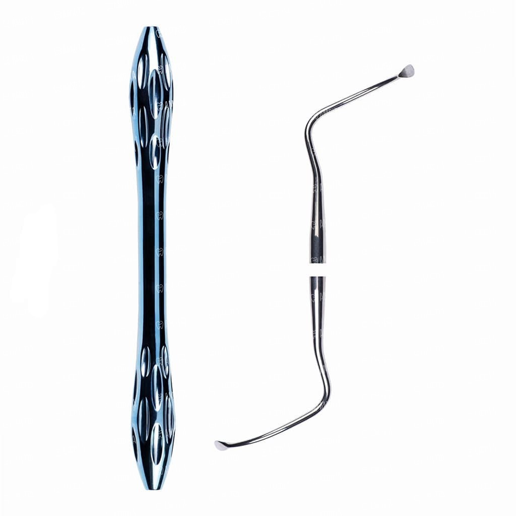 - Двусторонняя стоматологическая кюретка предназначена для проведения хирургических манипуляций в пародонтальной хирургии и имплантологии: для безопасного поднятия слизистой при проведении открытого синус-лифтинга (поднятия дна в боковой стенке гайморовой пазухи).