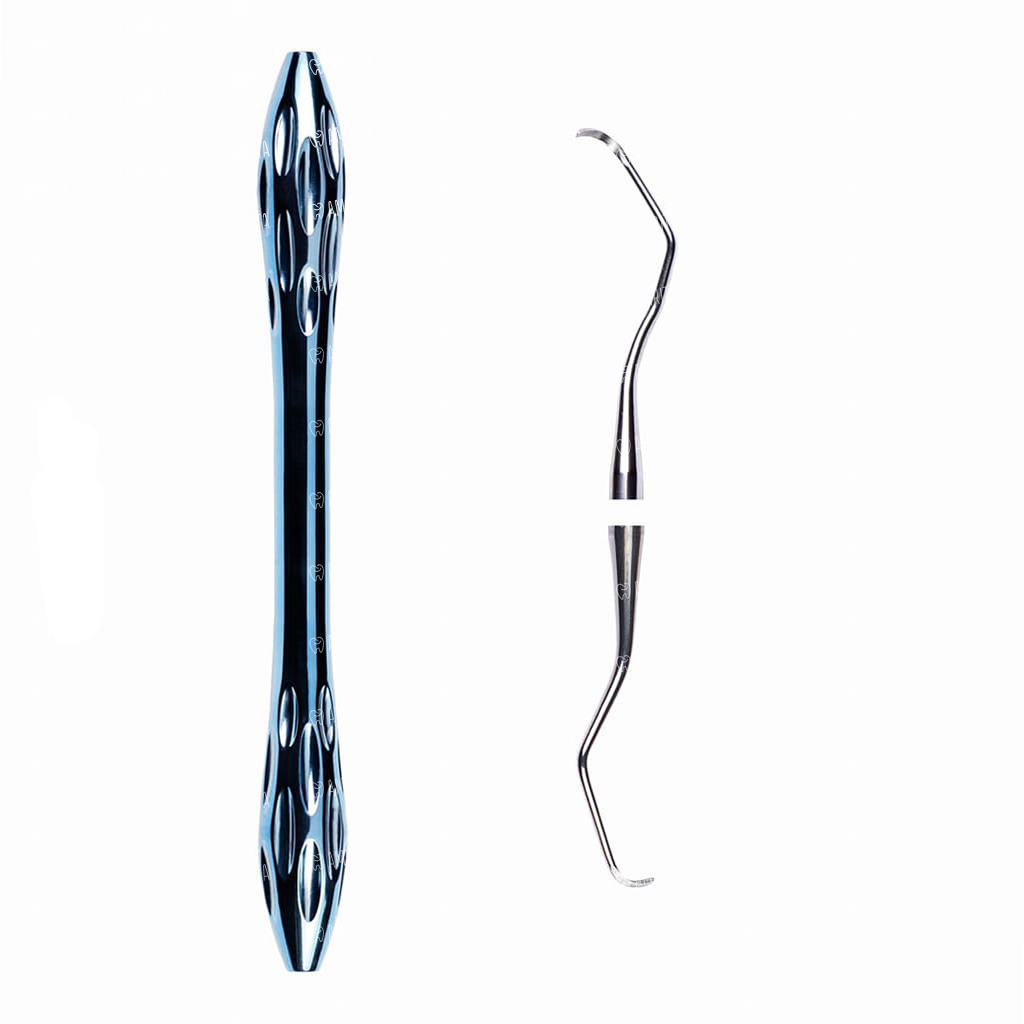 - У кюретки есть два рабочих конца, что расширяет спектр ее применений и позволяет работать в разных зонах ротовой полости, не меняя инструмент;