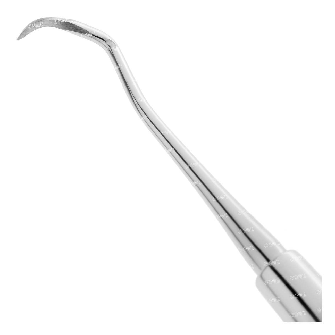 Для удобного и надежного удержания скейлера в процессе работы экстра легкая ручка стоматологического инструмента покрыта шероховатым микрорельефом. Удобная цилиндрическая рукоятка пародонтологического скейлера имеет немного увеличенный диаметр, способствующий снижению напряжения в пальцах и кисти врача.