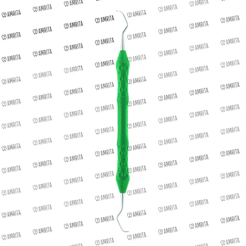 Кюретка стоматологическая, по GRACEY, 7/8, DB383R, B.Braun (Aesculap, Германия) предназначена для удаления поддесневого и незначительного наддесневого зубного камня, грануляционных и эпителиальных тканей зубодесневого кармана, размягченных инфицированных элементов зубного цемента. Инструмент состоит из ручки зеленого цвета, функционального стержня и рабочей части, изготовленной из нержавеющей части. Рабочая часть имеет закругленный кончик, режущие (боковые) края, округлую спинку.