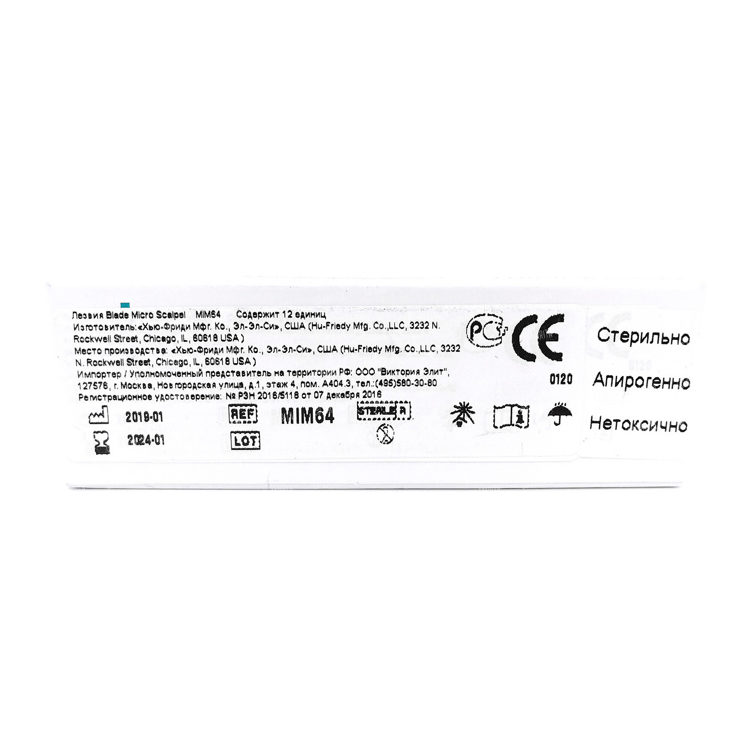 Лезвия для скальпеля Micro #64, для микрохирургии, стерильные, 12 шт