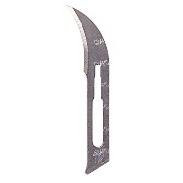Небольшое лезвие, имеющее форму серпа, заостренный кончик и заточку по внутренней стороне изгиба. Используется в качестве лезвия для снятия швов, но находит применение также при артериотомиях (разрезах артерий), в челюстно-лицевой хирургии (при операциях на околоушной слюнной железе), выполнении разрезов слизистых или септопластике (пластике носовой перегородки), пластике «волчьей пасти». Может использоваться при проведении таких урологических вмешательств, как уретролитотомия (удаление камней выполнением разреза уретры) и пиелолитотомия (вскрытие почечной лоханки для удаления конкрементов). Индивидуальная упаковка изготовлена из алюминиевого композитного материала PET/AL/PE толщиной 0,08 мм и полностью предотвращает проникновение кислорода. Совместимы с ручкой для скальпелей № 3.