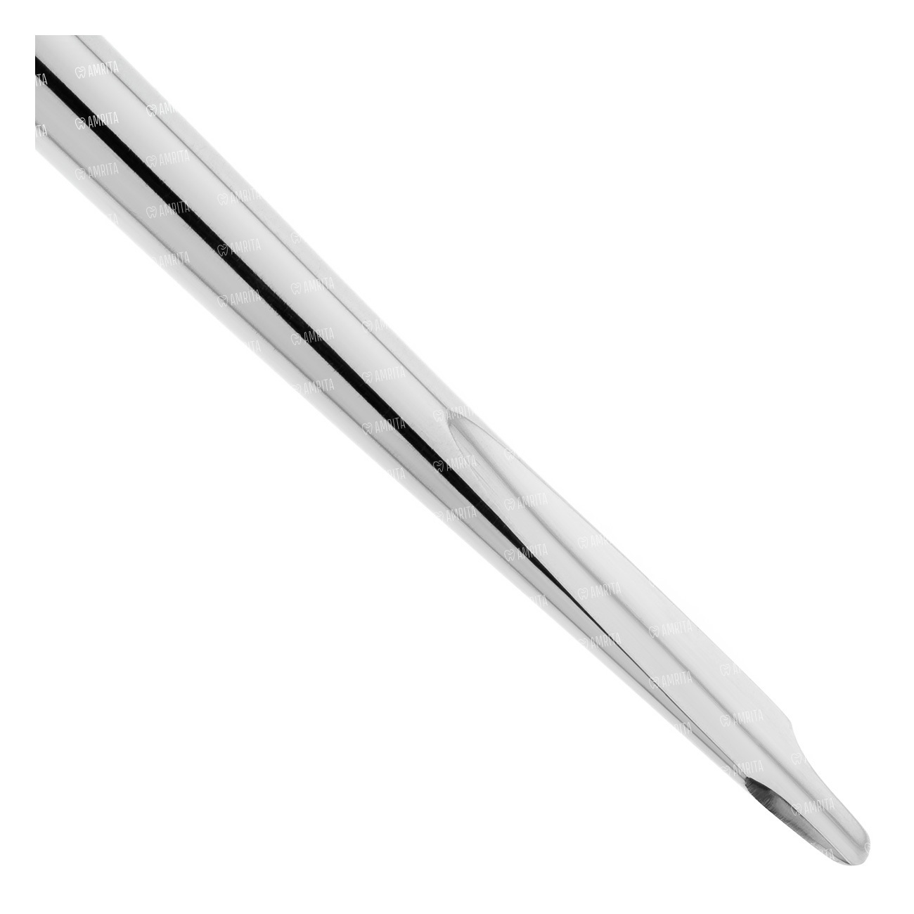 Ручка люксатора легкая, гладкая, с продольными гранями на поверхности и выемками под пальцы с двух сторон. Проводить операцию по удалению корней или зубов инструментом с такой ручкой очень удобно.