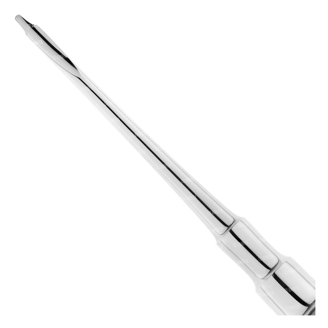 Люксатор прямой, 3,0 мм, HLW (Германия) используется для атравматичного удаления корней и зубов на нижней и верхней челюсти. Внутренняя поверхность щечки люксатора тонкая, повторяет форму зуба и имеет небольшую, острую, овальную выемку на конце, что позволяет глубоко ввести инструмент между корнем зуба и костной тканью лунки и подрезать периодонтальную связку. Удлиненная рабочая часть и соединительный стержень люксатора обеспечивают доступ к труднодоступным участкам полости рта.