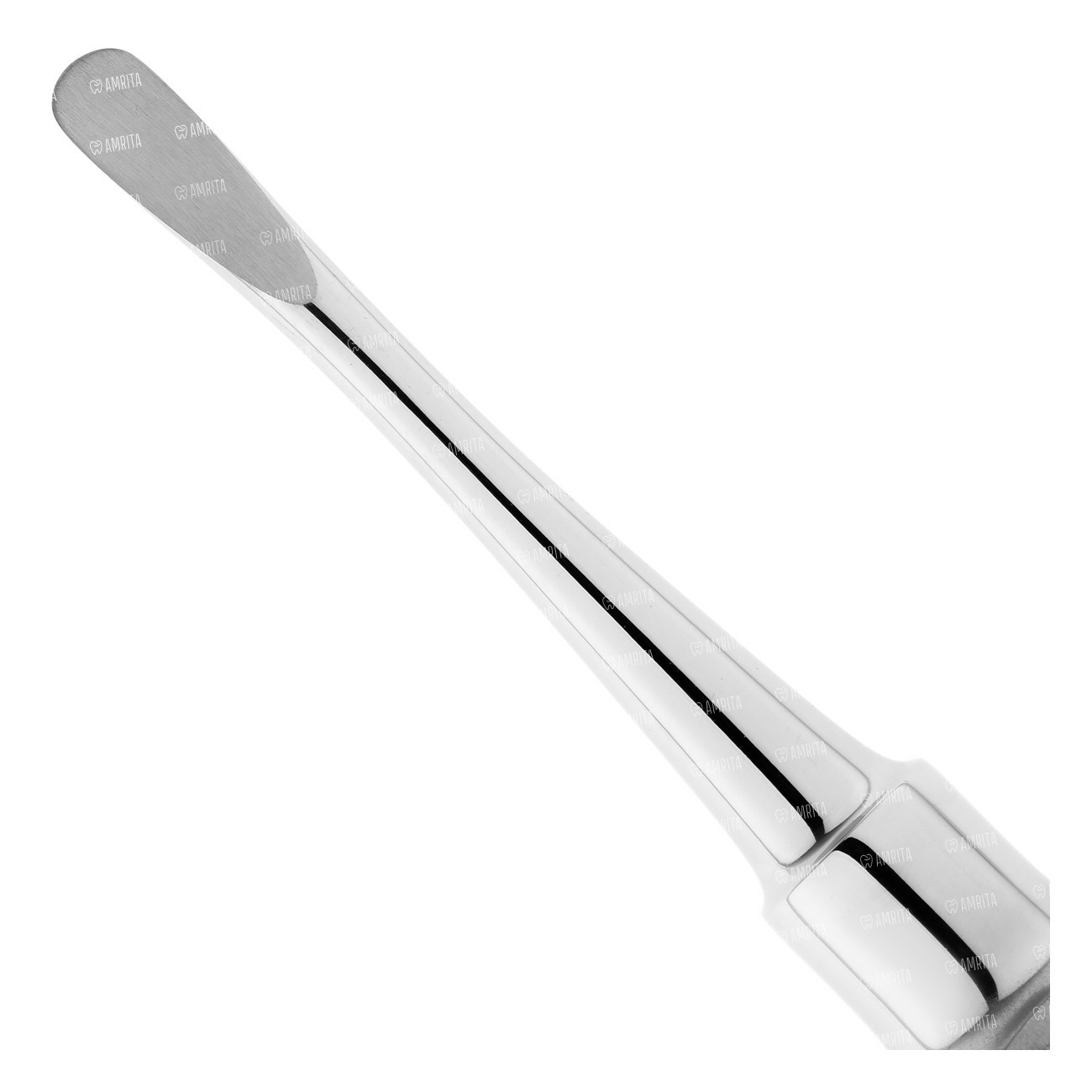 Стандартная ручка инструмента имеет грани и выемки под пальцы с обеих сторон, благодаря которым люксатор плотно фиксируется и снижает нагрузку на руку. Такая конструкция очень удобна в использовании и способствует успешному проведению операции.
