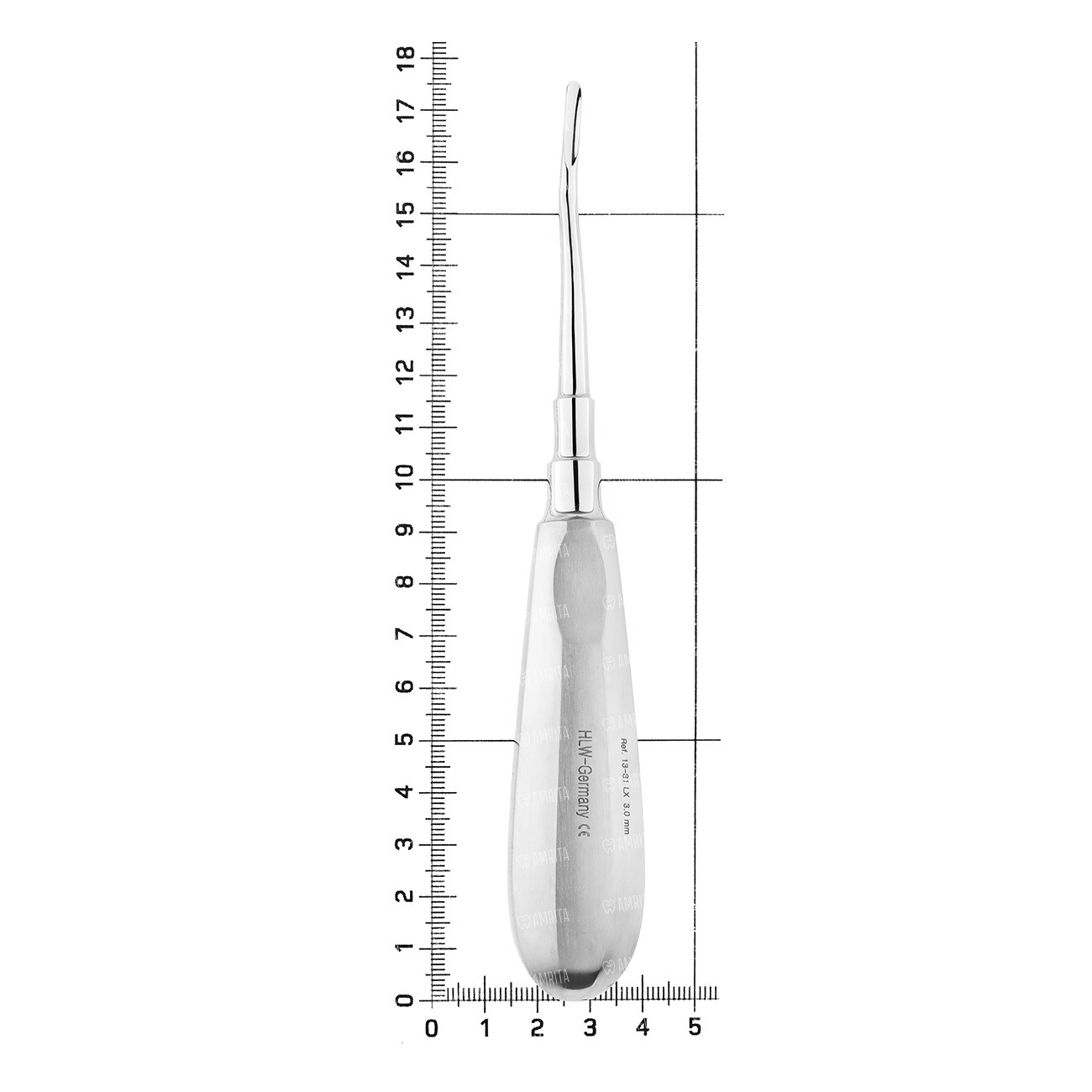 Кончик функционального стержня имеет изгиб для обеспечения удобного доступа в периодонтальную щель удаляемого зуба. Узкое лезвие позволяет эффективно выполнять поддевающие движения при скученных зубах. и не выраженных межзубных промежутках с минимальной травмой окружающих мягких тканей.
