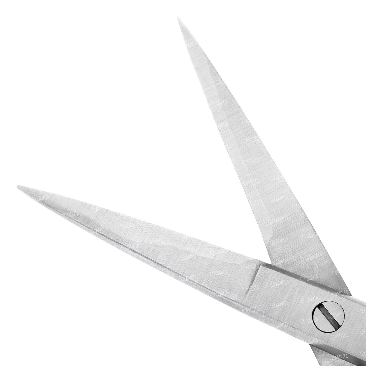 Ножницы прямые для мягких тканей конструкции ИРИС. Серейторная заточка режущей поверхности препятствует эффекту размозжения тканей и уменьшает шанс выскальзывания, имеет самозатачивающийся эффект.