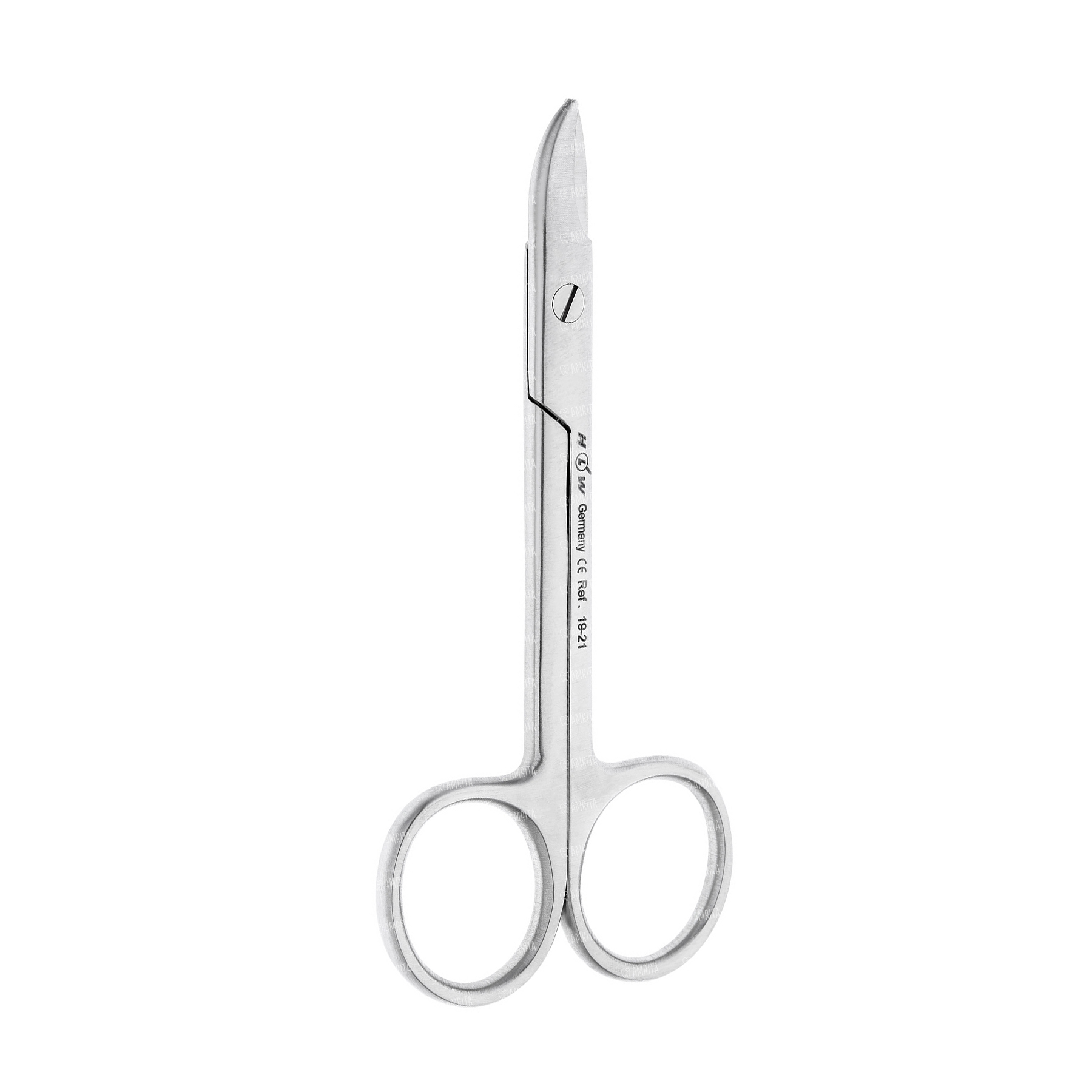 Ножницы, предназначенные для работы с металлическими коронками, имеют длину 10 см, рабочая часть в виде движущихся навстречу друг другу бранш, с гладкими режущими плоскостями.