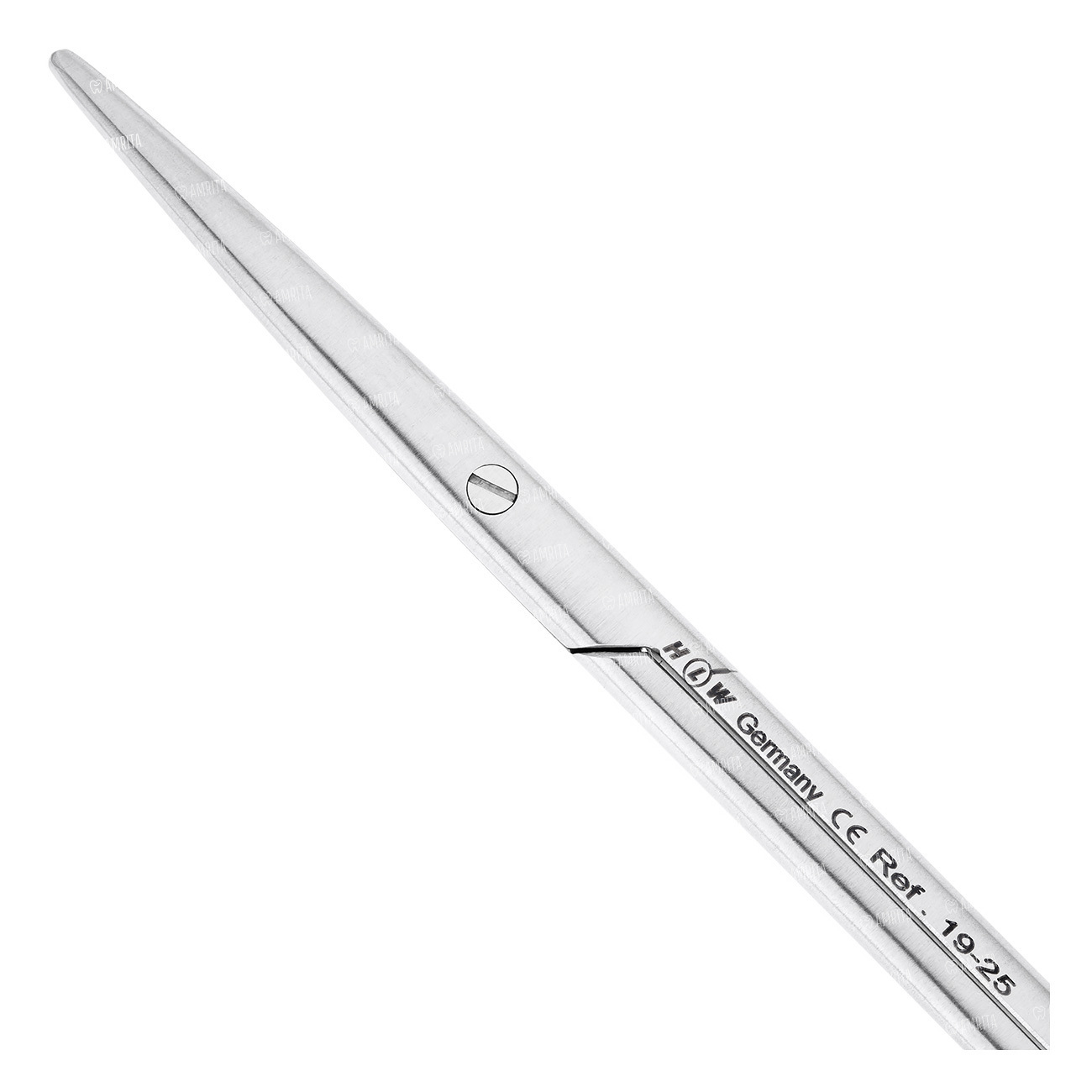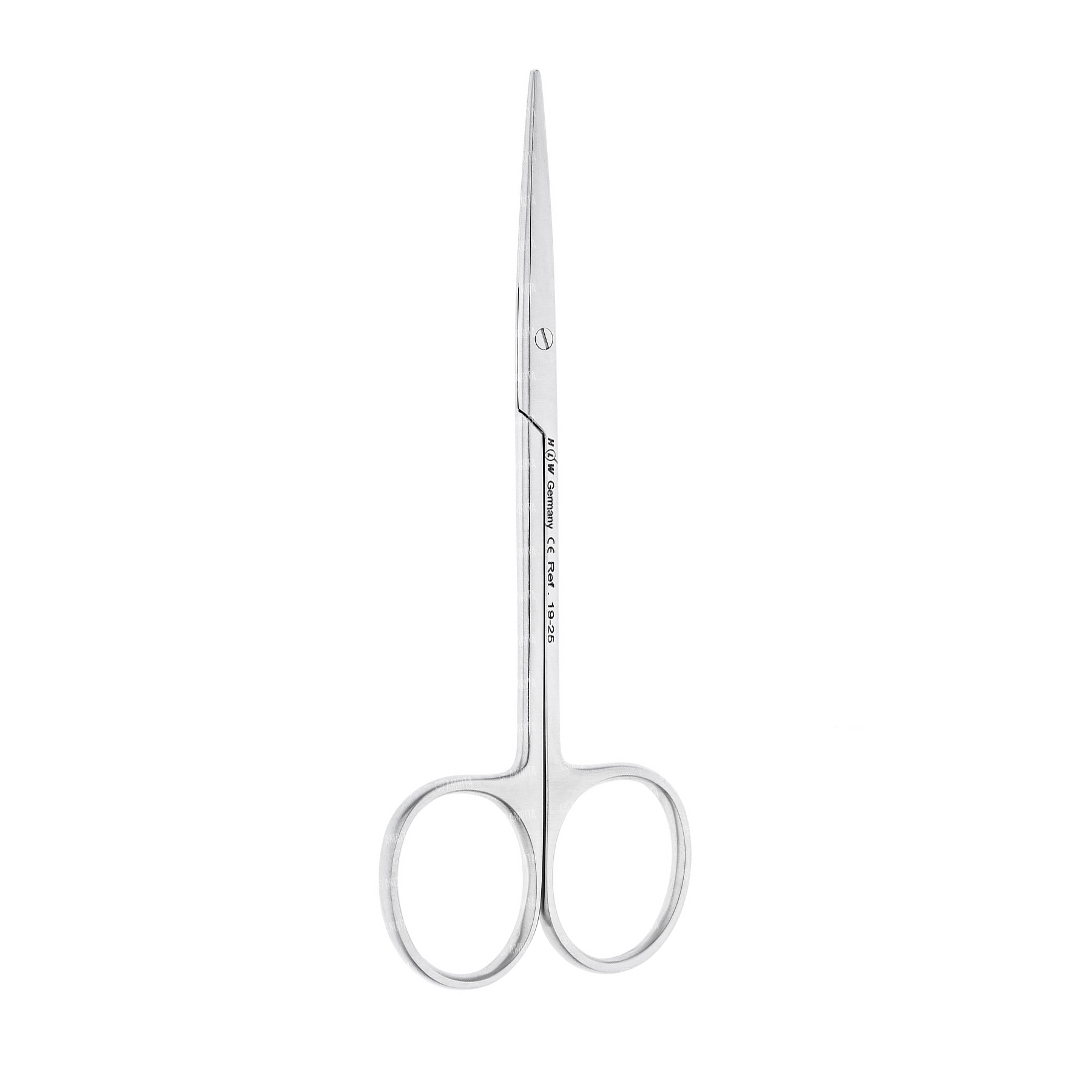 Ножницы прямые конструкции МЕТЗЕНБАУМА (по автору). Имеют симметричные закругленные рабочие части, которые истончаются к вершине. Рабочие части имеют гладкую оструб заточку и самозатачивающийся эффект. Держатели имеют стандартную кольцевую форму. Общая длина инструмента не более 12 см.