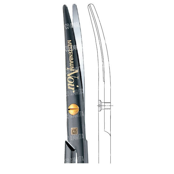 Ножницы препаровальные Metzenbaum, DUROTIP, NOIR, изогнутые, 1 зубчатое лезвие, 145 мм