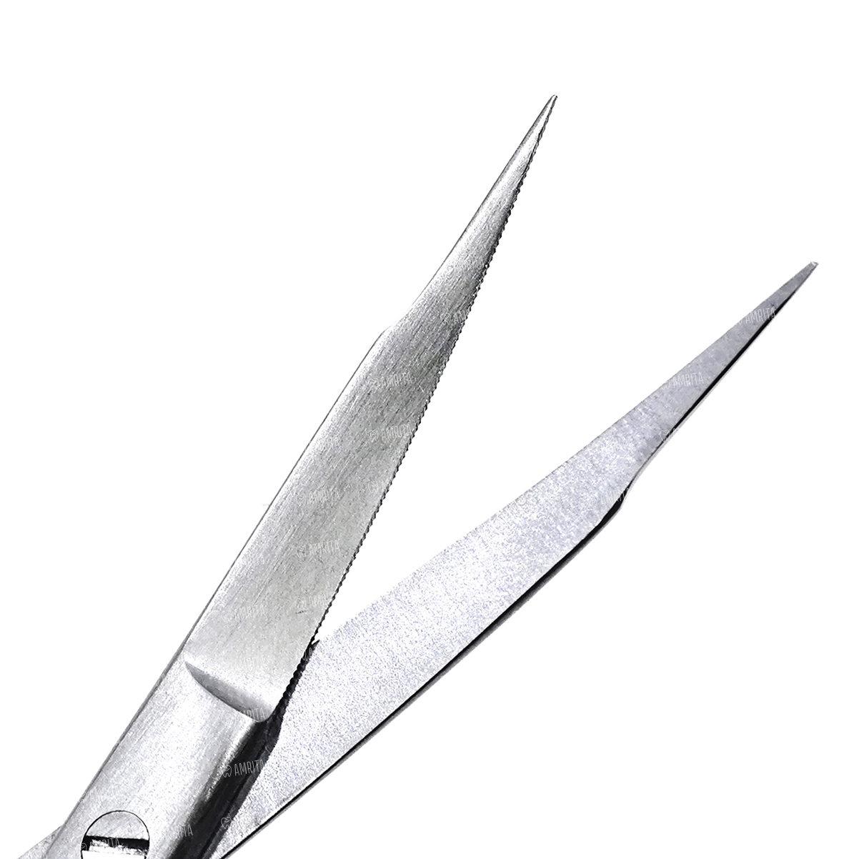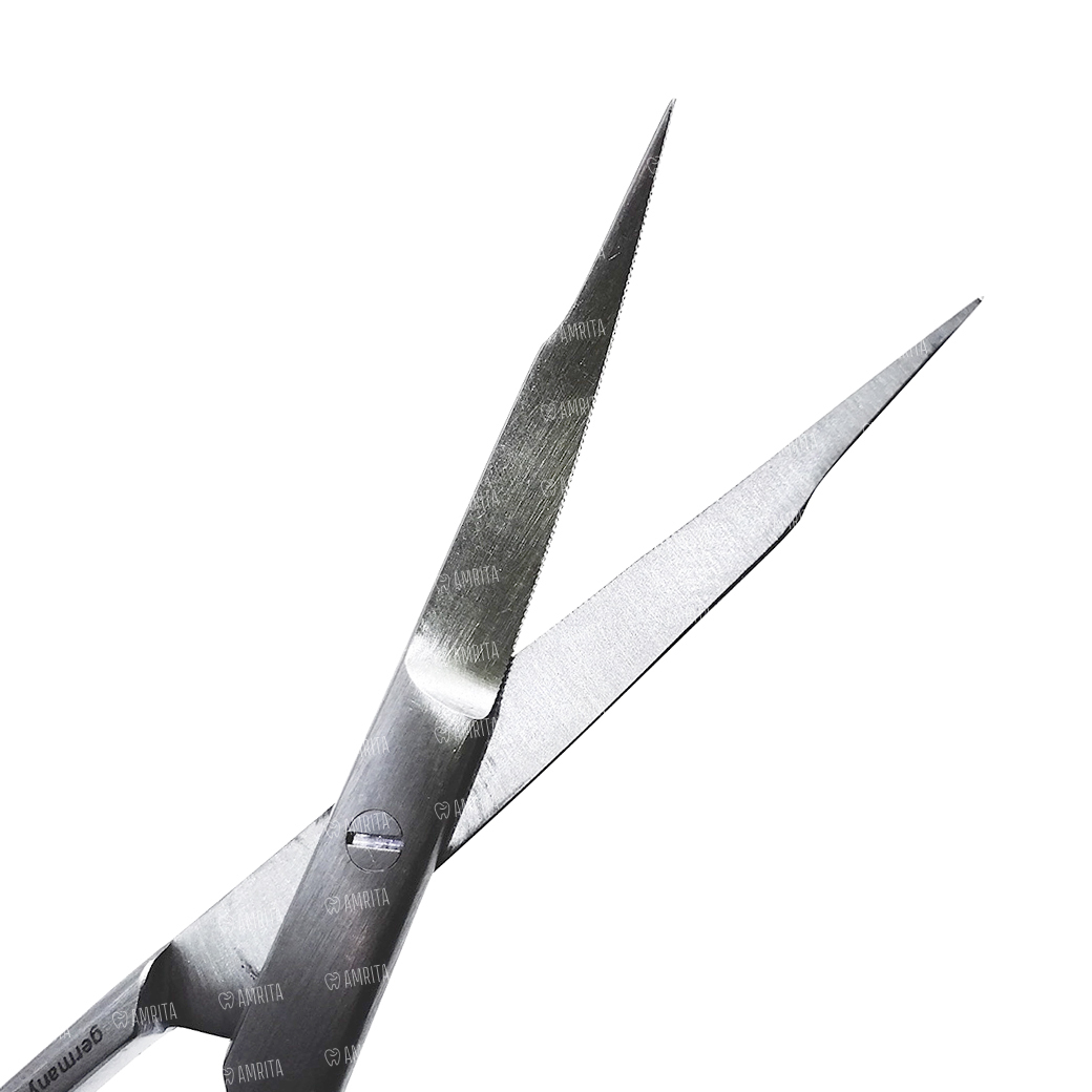 Зубчатая рабочая поверхность одного лезвия не позволяет тканям выскальзывать.