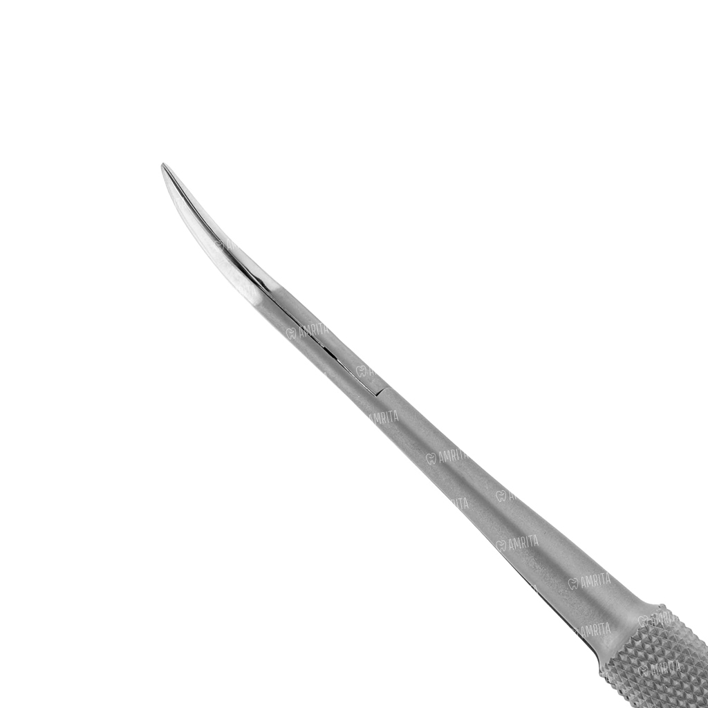 - Благодаря плавноизогнутой форме концов ножницы обеспечивают высокую маневренность. Инструмент можно вводить в рану мягко, обходя анатомические изгибы, что минимизирует риск повреждения сосудов и нервов.