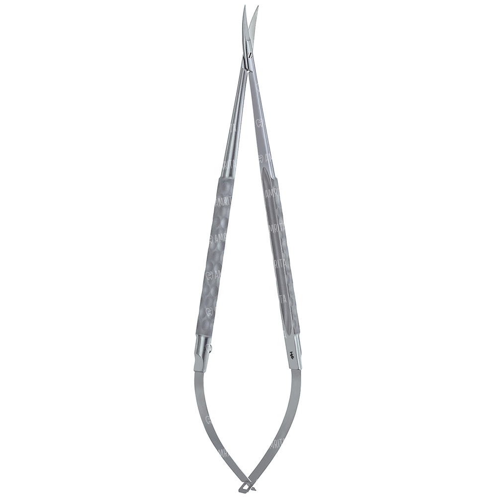 Ножницы микрохирургические, изогнутые, длина 180 мм, FD251R, B.Braun (Aesculap, Германия) состоят из лезвия, шарнирного замка, рукоятки и возвратно-пружинящего устройства. Инструмент имеет небольшую длину лезвий по сравнению с длиной рукояток, неровную наружную поверхность рукояток для удобства фиксации в руке и удлиненную прорезь на рукоятках для кончиков пальцев. Микрохирургические ножницы предназначены для проведения различных манипуляций в пародонтологии, нейро- и сосудистой хирургии, а также в частных случаях офтальмологии. Инструмент обеспечивает максимальную точность рассечения и сводит к минимуму риски повреждения.