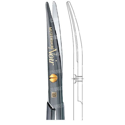 Ножницы препаровальные Metzenbaum, DUROTIP, NOIR, изогнутые, 1 зубчатое лезвие, 145 мм