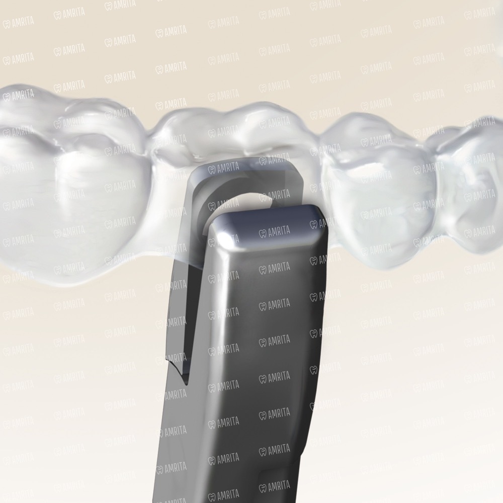 Инструмент для элайнеров, дырокол предназначен для создания вырезов в форме полумесяца на элайнерах. Эти вырезы необходимы для рельефа, придающего эстетики съемному ортодонтическому аппарату. Инструмент легко отщипывает пластик, чтобы обеспечить зазор для мягких тканей и предотвратить столкновение и сильное соприкосновение элайнеров с тканью.