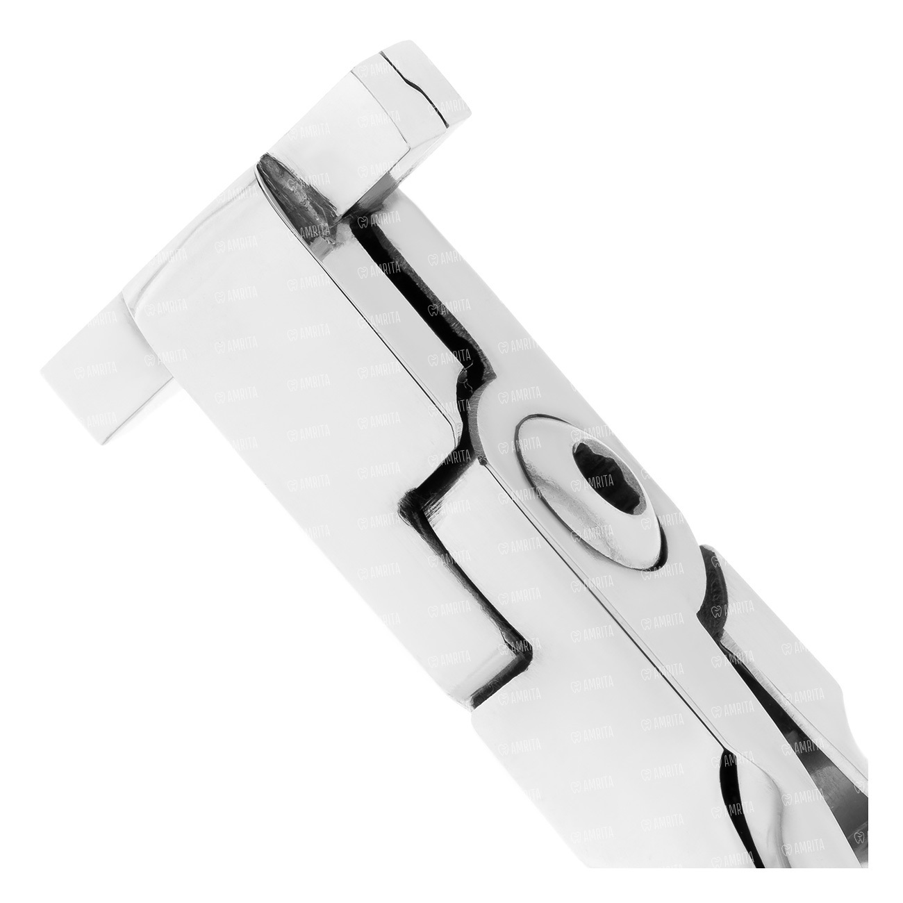 Рабочие части имеют противопоставленные друг другу уступы под углом 90 градусов к поперечной оси инструмента и сопоставляются при смыкании рукояток. Общая длина инструмента не более 12 см.