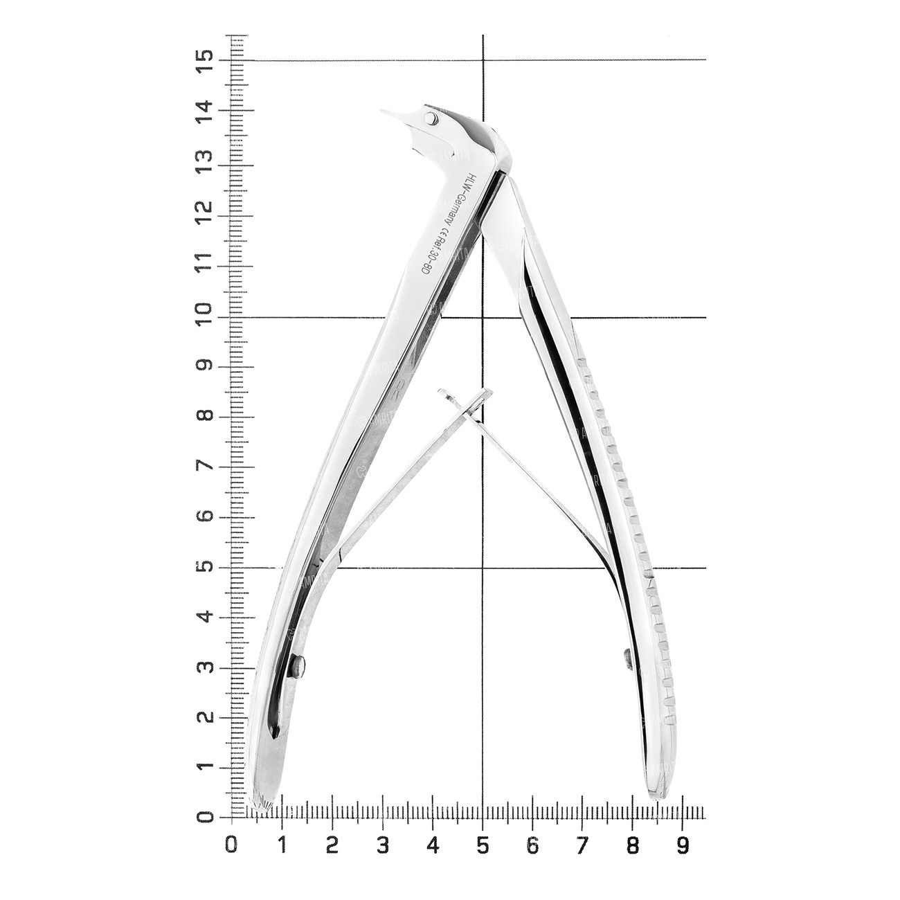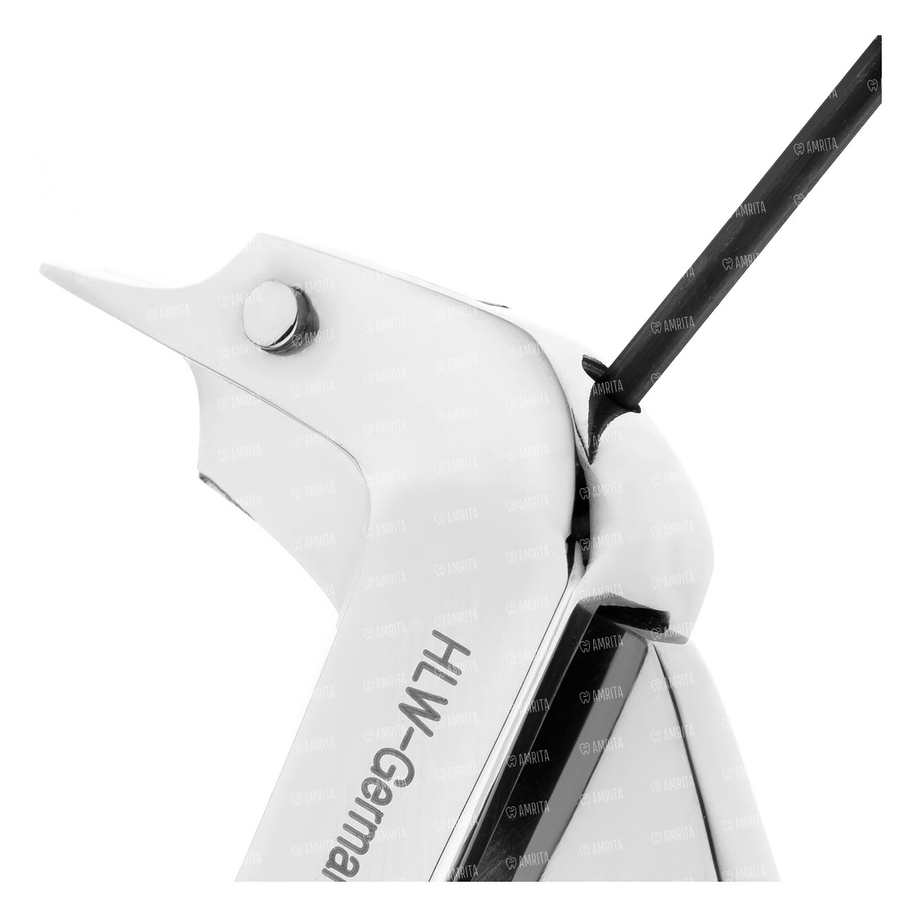Щипцы клювовидные ортопедические, для удаления искусственной коронковой части зуба на постоянной цементной фиксации. Снабжены сводящей рабочие части пружиной. Рабочие части утончены для позиционирования между краев распила ортопедической конструкции. Могут применяться для всех групп зубов. На ручках крупный поперечный ретенционный рельеф.