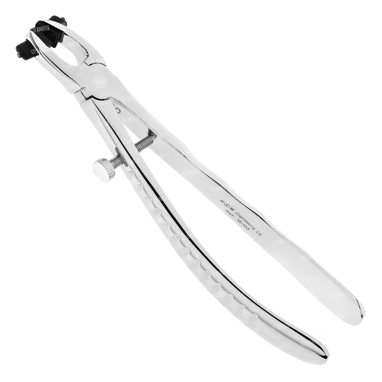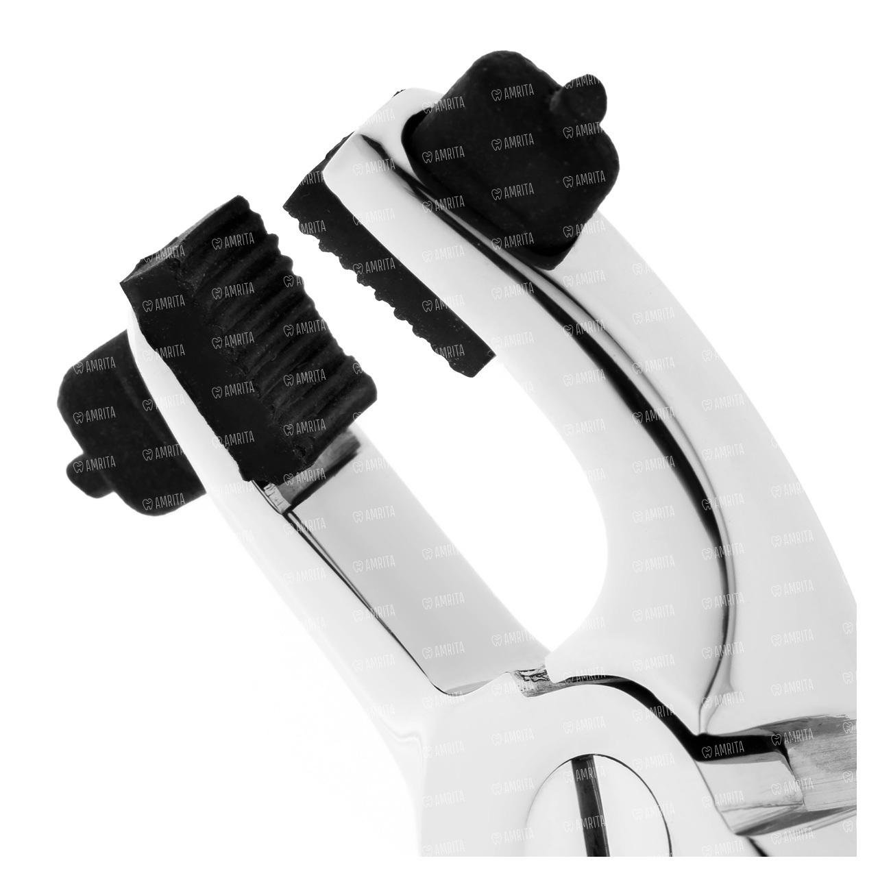 Одна из ручек инструмента имеет ограничительный винт предотвращающий излишнее сдавливание и деформацию хрупких безметалловых конструкций. Поверхность одной из ручек имеет эргономически удобные анатомичные изгибы для фаланг пальцев, вторая ручка гладкая. Отполированы до зеркального блеска. В основании шарнирного соединения имеется тефлоновая вставка обеспечивающая плавный ход инструмента.