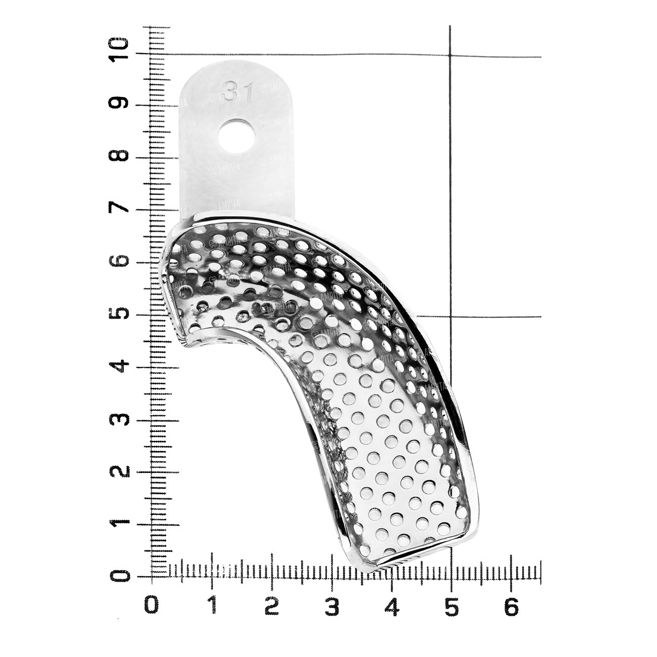Ложка слепочная фрагментированная, HLW (Германия) предназначена для снятия оттисков (слепков) челюсти с правой стороны. Инструмент имеет ложе для оттискного материала, ограниченное бортами, и ручку для удержания и ориентировки ее в полости рта. Ложка перфорированная, она используется для снятия оттисков альгинатными, силиконовыми и другими оттискными материалами, не обладающими достаточной прилипаемостью, чтобы удержаться на ложке без отверстий.