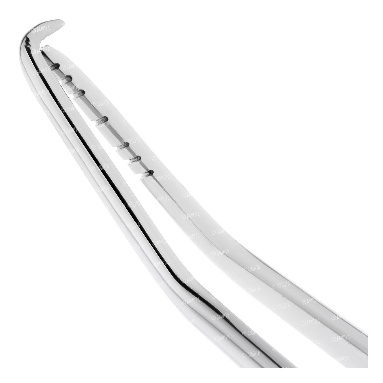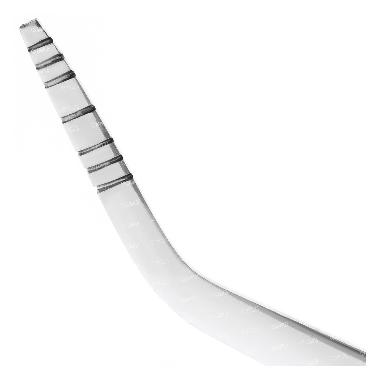 Пинцет изогнутый парадонтологический. Общая длина не более 15 см. Внешние поверхности ручек имеют горизонтальные ретенционные насечки, предотвращающие выскальзывание инструмента.