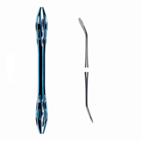 Пинцет изогнутый лингвальный обратный c позиционером. Используется для удержания и установки брекетов на поверхность зуба. Тыльная сторона пинцета используется для удаления излишков адгезивного и иного материала из области проведения манипуляции.