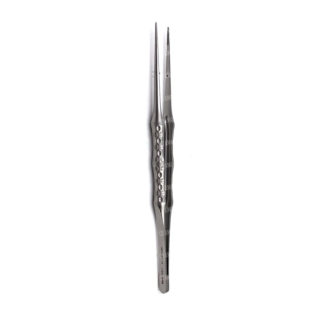 Пинцет пародонтологический Aesculap, прямой, для деликатного захвата, рифленые зубчики, L=180 мм, сталь, 1 шт