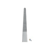 - Рабочие бранши оснащены тонкими поперечными насечками, которые обеспечивают надежный захват и удержание тканей, предотвращая их соскальзывание в процессе препарирования, при этом минимизируя травматизацию;