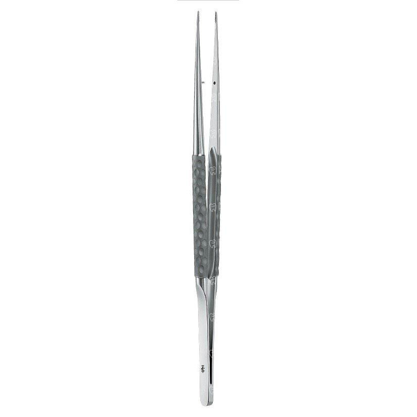 Пинцет, DX303R, B.Braun (Aesculap, Германия) изготовлен из высококачественной нержавеющей стали, состоит из двух пружинящих браншей на концах которых имеются зубчики, они обеспечивают надежный захват и удержание предметов. На пинцете есть рифленая поверхность, чтобы при работе с ним рука специалиста не соскальзывала.